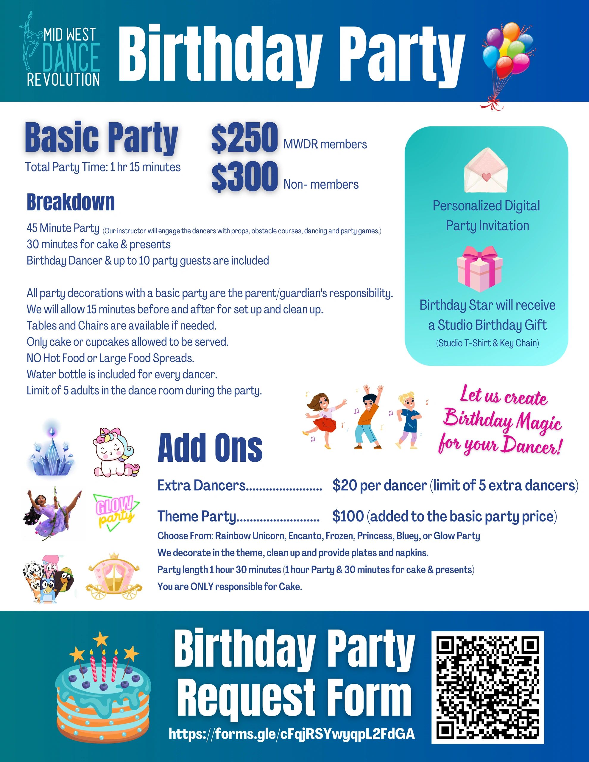 Fill out the Birthday Party Request Form below to schedule your Party today!