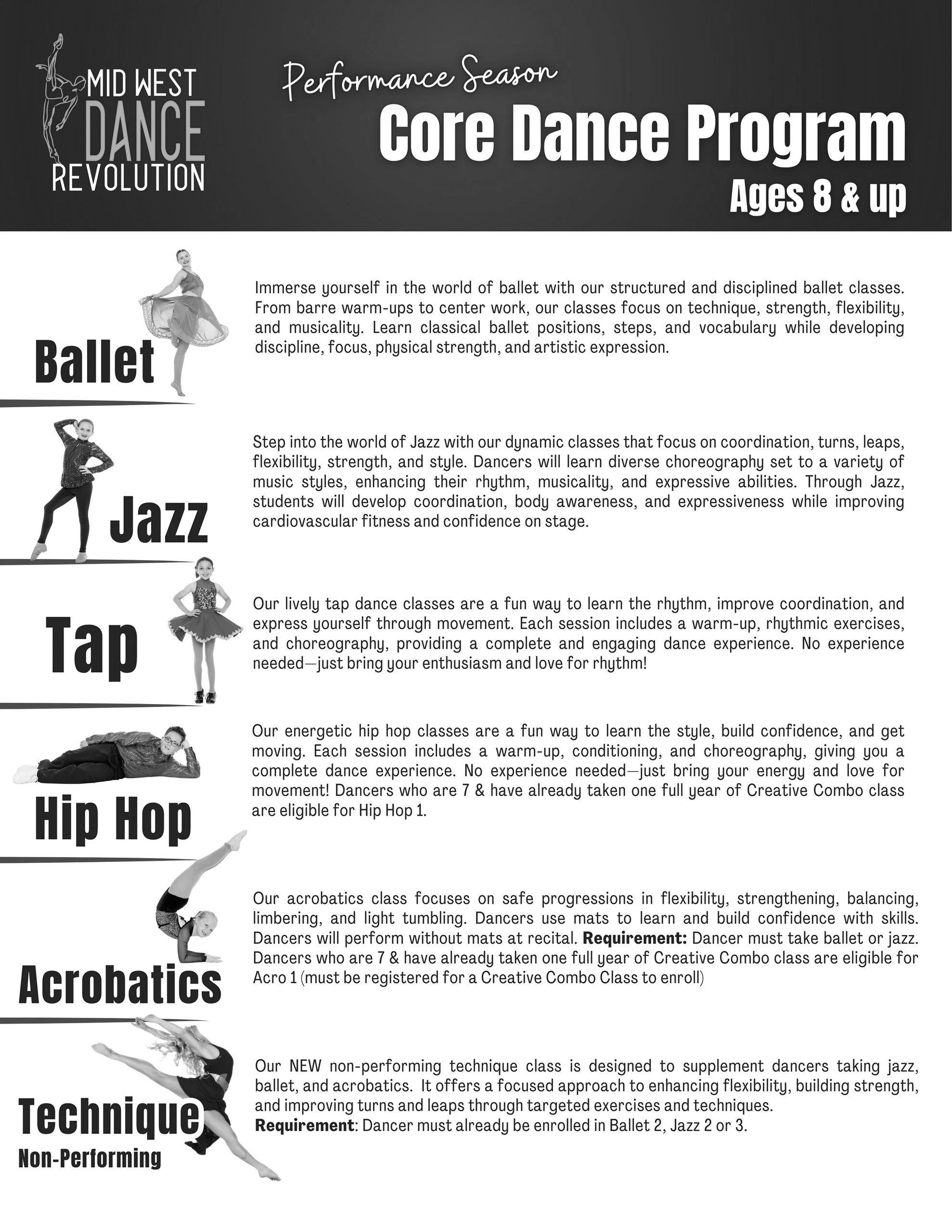 Our Discover Dance and Creative Combo classes provide a fun, age-appropriate foundation for preschoolers through second graders. Designed to build confidence, introduce proper class etiquette, and foster a love for dance, this program offers a strong start for young dancers and a solid foundation for future growth.