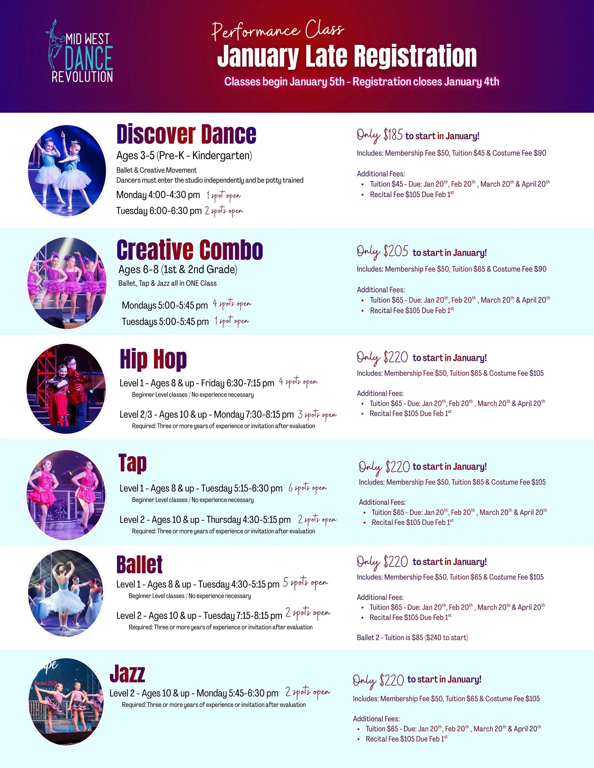 Our non-competitive Core Dance classes, designed for dancers aged 8 and up, offer a professional and technically focused experience. Featuring ballet, jazz, tap, hip hop, and acrobatics, these classes build a solid foundation for any dancer looking to advance their skills, confidence, and artistry in an enriching and reputable environment.